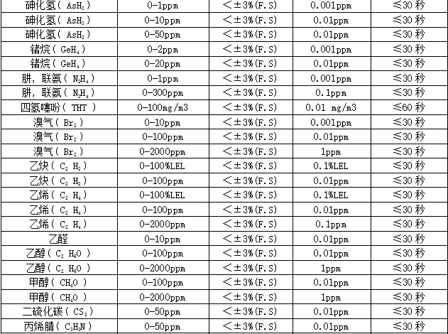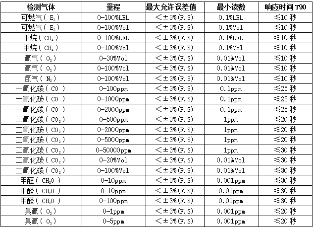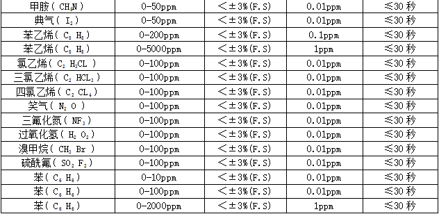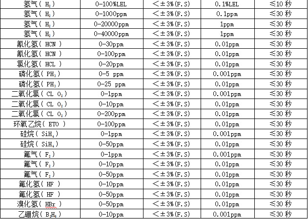 ¼ì²â¹æÄ££º0¡«1¡¢10¡¢100¡¢1000¡¢5000¡¢50000¡¢100000ppm¡¢200ºÁ¿Ë/Éý¡¢100%LEL¡¢20%¡¢50%¡¢100%Vol¿ÉÑ¡£¬ÆäËûÁ¿³Ì¿É¶©ÖÆ ¡£