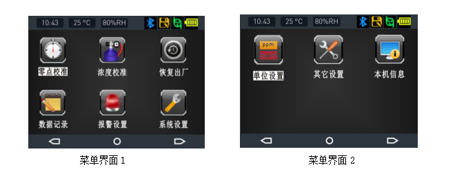 ¡ñ2.31Ó¢´ç¸ßÇå²ÊÆÁÏÔʾʵʱŨ¶È¡¢±¨¾¯¡¢Ê±¼ä¡¢Î¶ȡ¢Êª¶È¡¢´æ´¢¡¢Í¨Ñ¶¡¢µçÁ¿¡¢ ³äµç״̬µÈÐÅÏ¢£¬²Ëµ¥½çÃæ½ÓÄɸßÇå·ÂÕæÍ¼±êÏÔʾ¸÷¸ö²Ëµ¥µÄ¹¦Ð§Ãû³Æ
