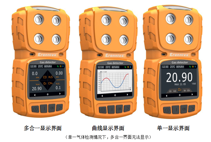 ¡ñ¿ÉÒÔÑ¡Åäͬʱ¼ì²â1¡«4ÖÖÆøÌ壬µ¥Î»×ÔÓÉÇл»µ¥Î»¿ÉÑ ¡£ºPPM¡¢mg/m3¡¢Vol%¡¢LEL%¡¢PPHM¡¢ppb¡¢mg/L