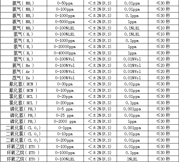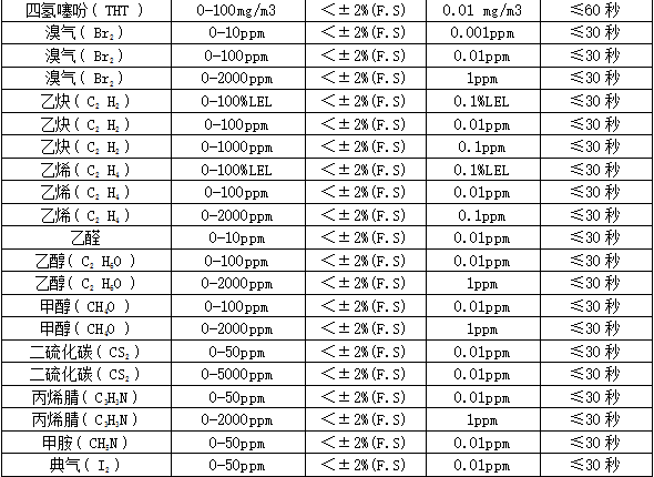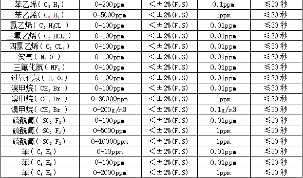 ²¿·Ö¿É¼ì²âÆøÌåÁÐ±í£º