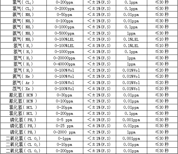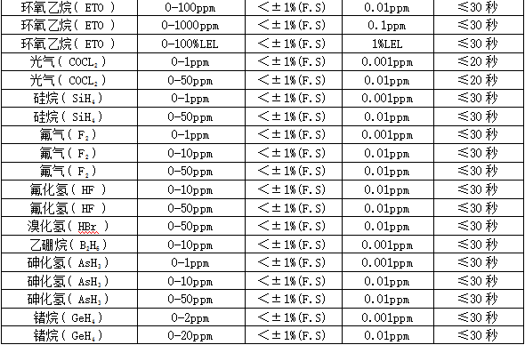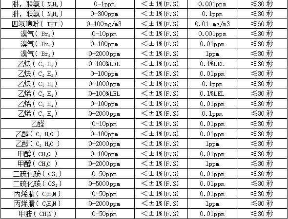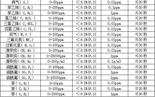 ²¿·Ö¿É¼ì²âÆøÌåÁÐ±í£º