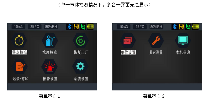 ¡ñ¸ßÇå2.5Ó¢´ç²ÊÆÁÏÔʾʵʱŨ¶È¡¢±¨¾¯¡¢Ê±¼ä¡¢Î¶ȡ¢Êª¶È¡¢´æ´¢¡¢Í¨Ñ¶¡¢´òÓ¡¡¢µçÁ¿¡¢³äµç״̬µÈÐÅÏ¢£¬²Ëµ¥½çÃæ½ÓÄɸßÇå·ÂÕæÍ¼±êÏÔʾ¸÷¸ö²Ëµ¥µÄ¹¦Ð§Ãû³Æ