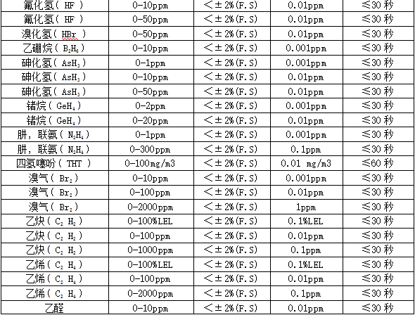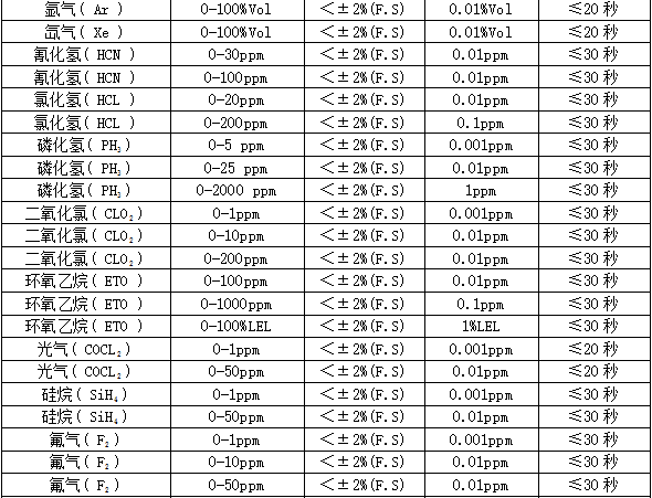 ²¿·Ö¿É¼ì²âÆøÌåÁÐ±í£º